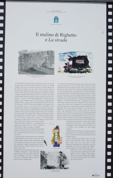 - Bella la postazione delle rovine del mulino, utilizzato da Fellini per il film “La strada”, che da il titolo a questa escursione. Ben segnalata e documentata con un pannello.
